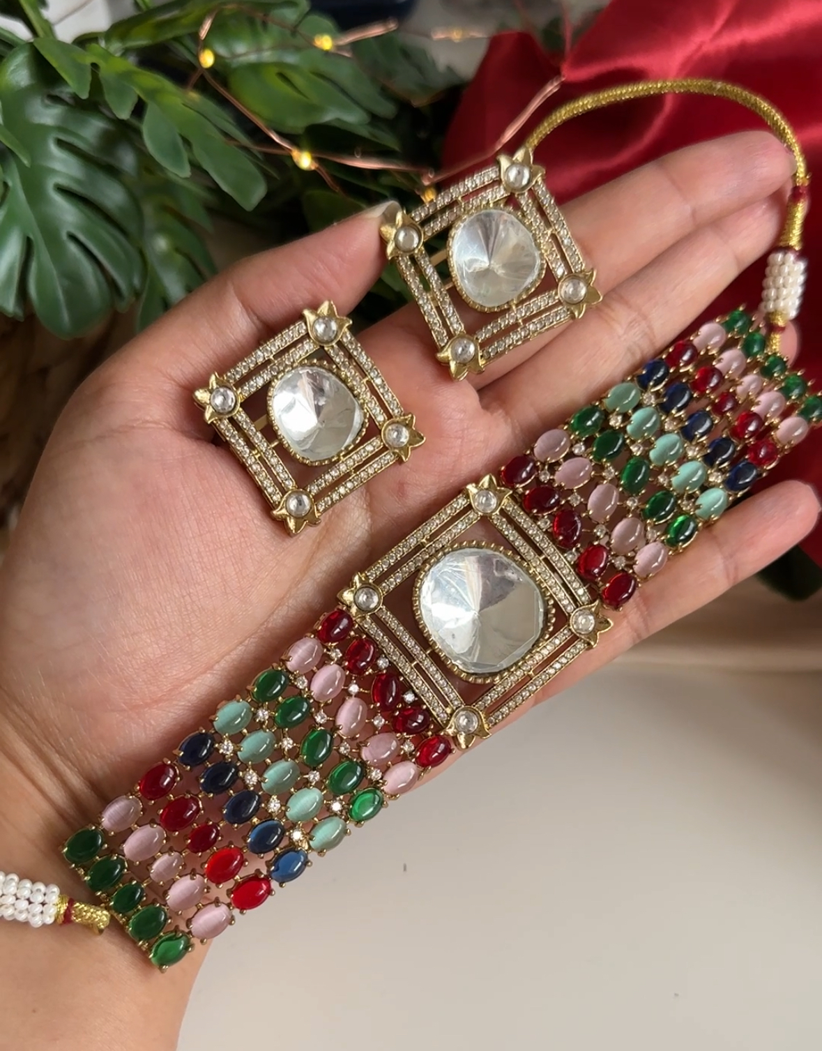 $99.00Sabyasachi Style Inspired Necklace Comes with Earrings Semi precious stones Premium quality