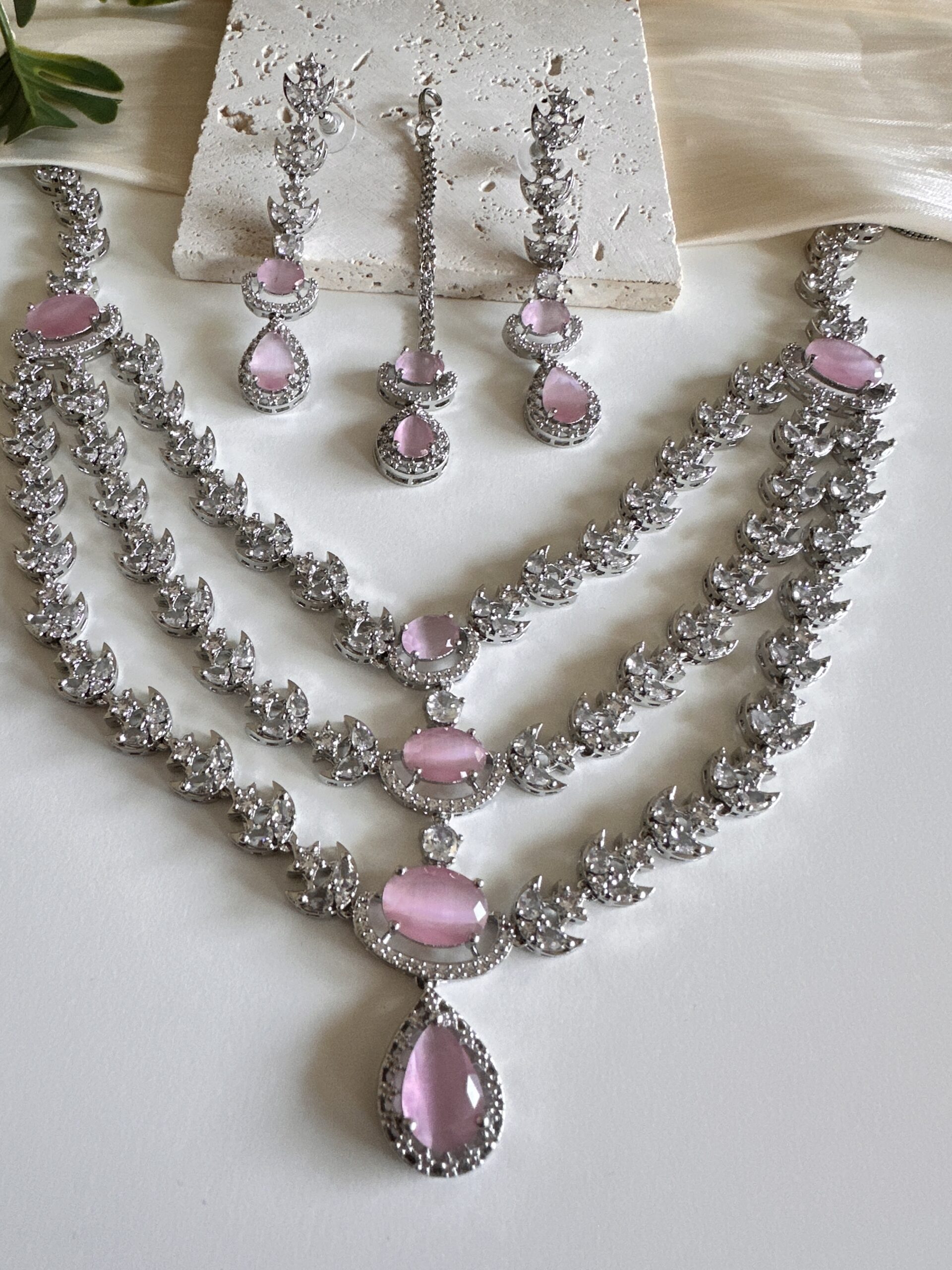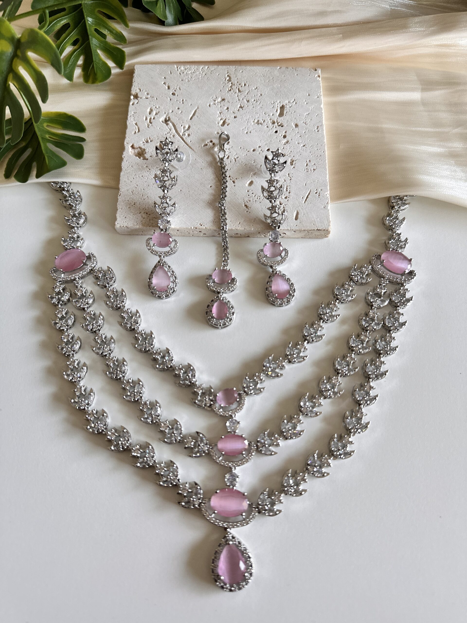 Three Layer Green AD Necklace Set
