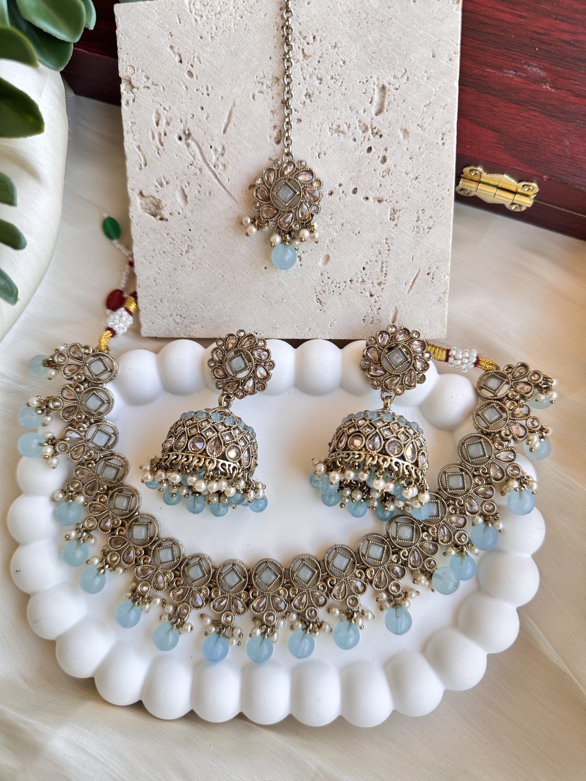 Pihu Necklace Set (Baby Blue)